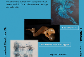 Fin août aura lieu le vernissage d'une nouvelle exposition à l'Espace Culturel Bleu de Chine à Fleurier. Je remercie déjà Adriana et Philippe de me donner la chance de poser mes pièces en ce lieu si particulier pour moi. Je devine déjà que ce sera une exposition forte en émotions et ressentis. Alors venez partager un moment avec nous !